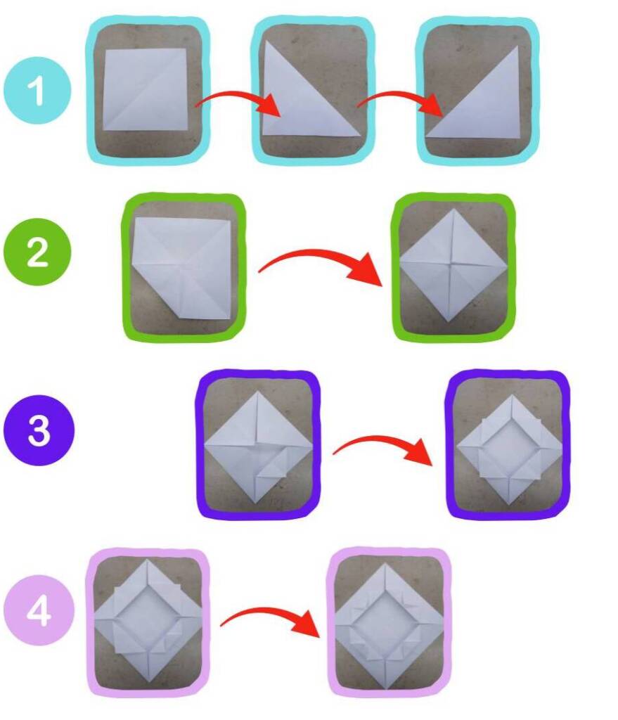 Schneidet euer Blatt zu einem Quadrat zurecht, wenn es noch keines ist. - Falten